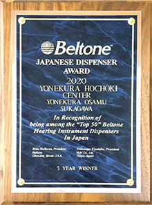 Beltone JAPANESE DISPENSER AWARD 2020“Top 50”